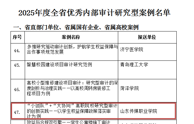 学院内审项目成功入选全省优秀内部审计研究型案例
